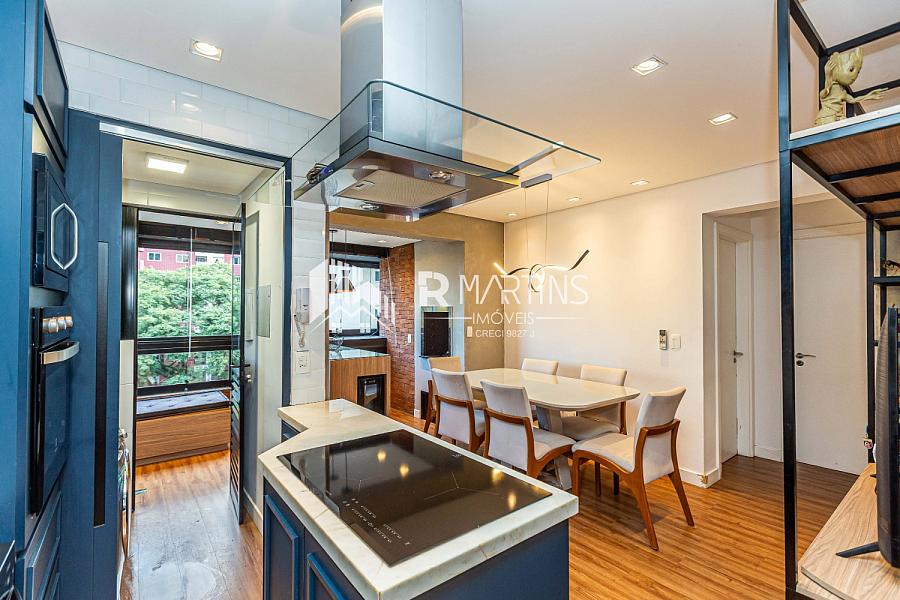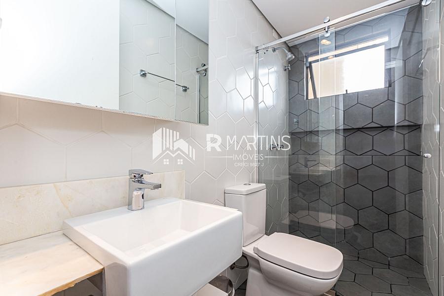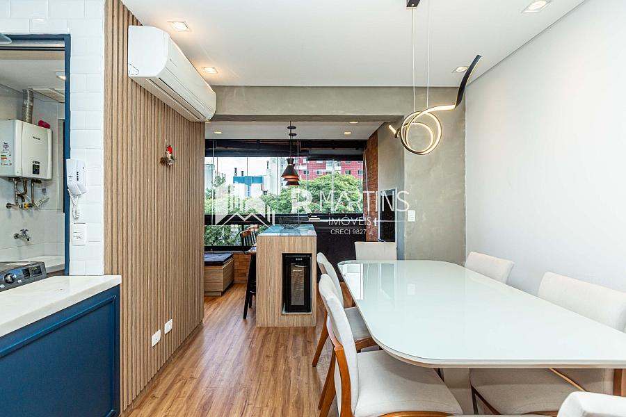 Apartamento localizado no bairro Portão, a duas quadras da Rua República Argentina, tem 70 metros quadrados, com 2 quartos, sendo 1 suíte e 2 banheiros.